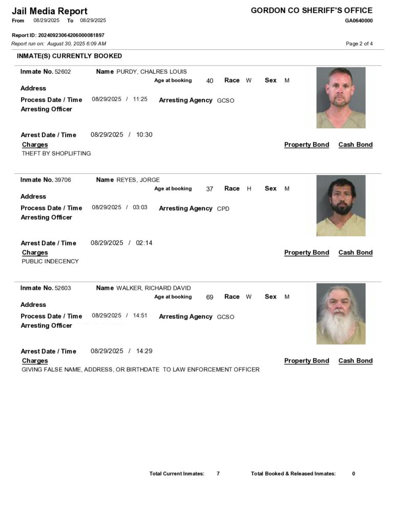 Gordon County Arrest Report 12/15/2025