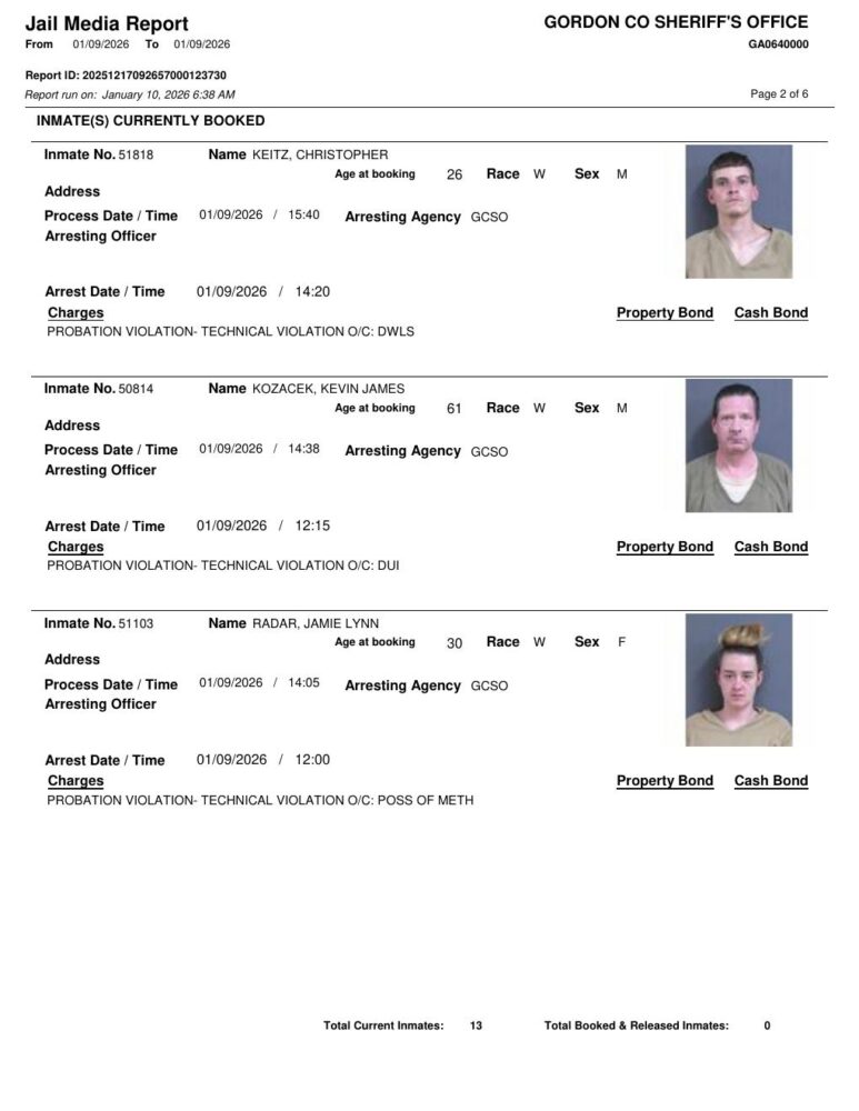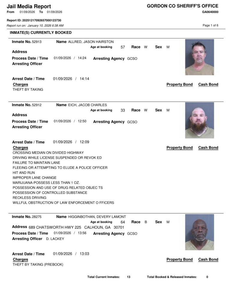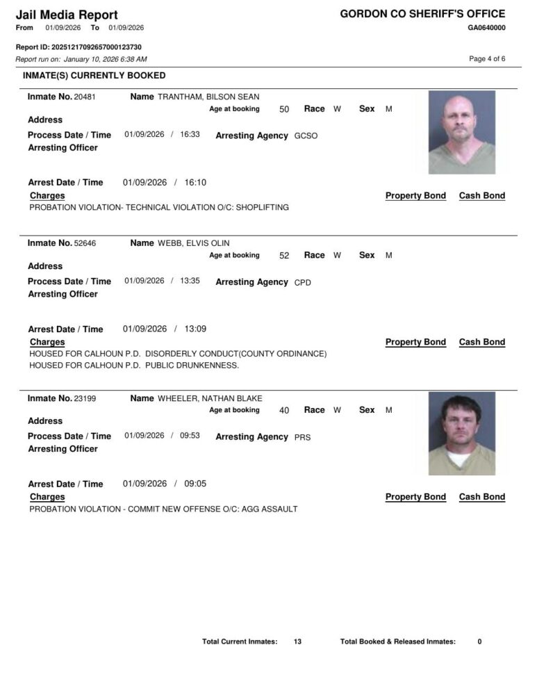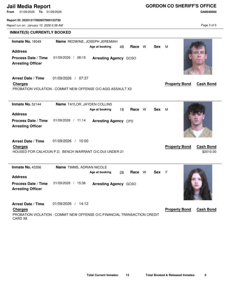 Gordon County Arrest Report 1/10/2026
