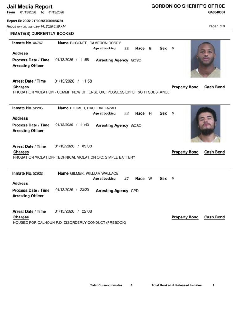 HomeArrest ReportsGordon County Arrest Report 1/14/2026Gordon County Arrest Report 1/14/2026Wed, January 14, 2026 SHARE NOW ×❮❯