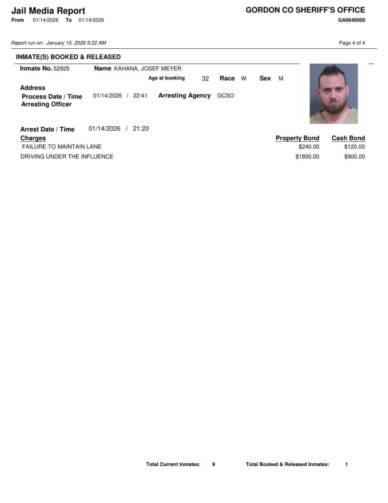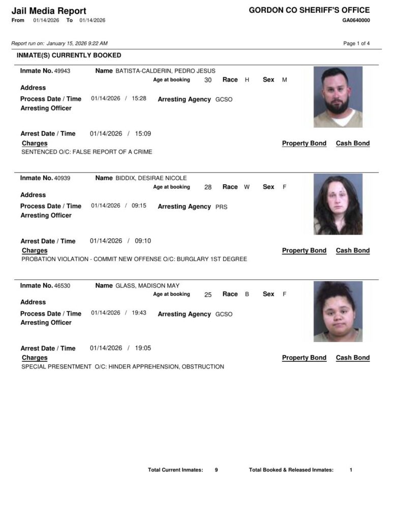 HomeArrest ReportsGordon County Arrest Report 1/15/2026Gordon County Arrest Report 1/15/2026Thu, January 15, 2026 SHARE NOW ×❮❯ Loading advertisement…