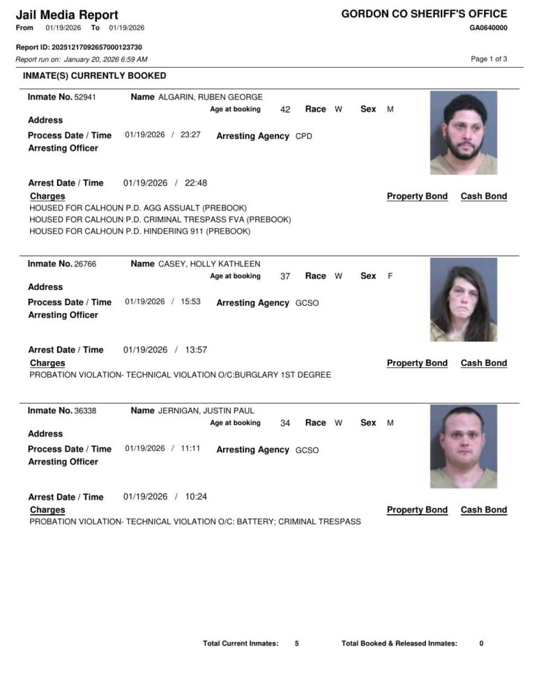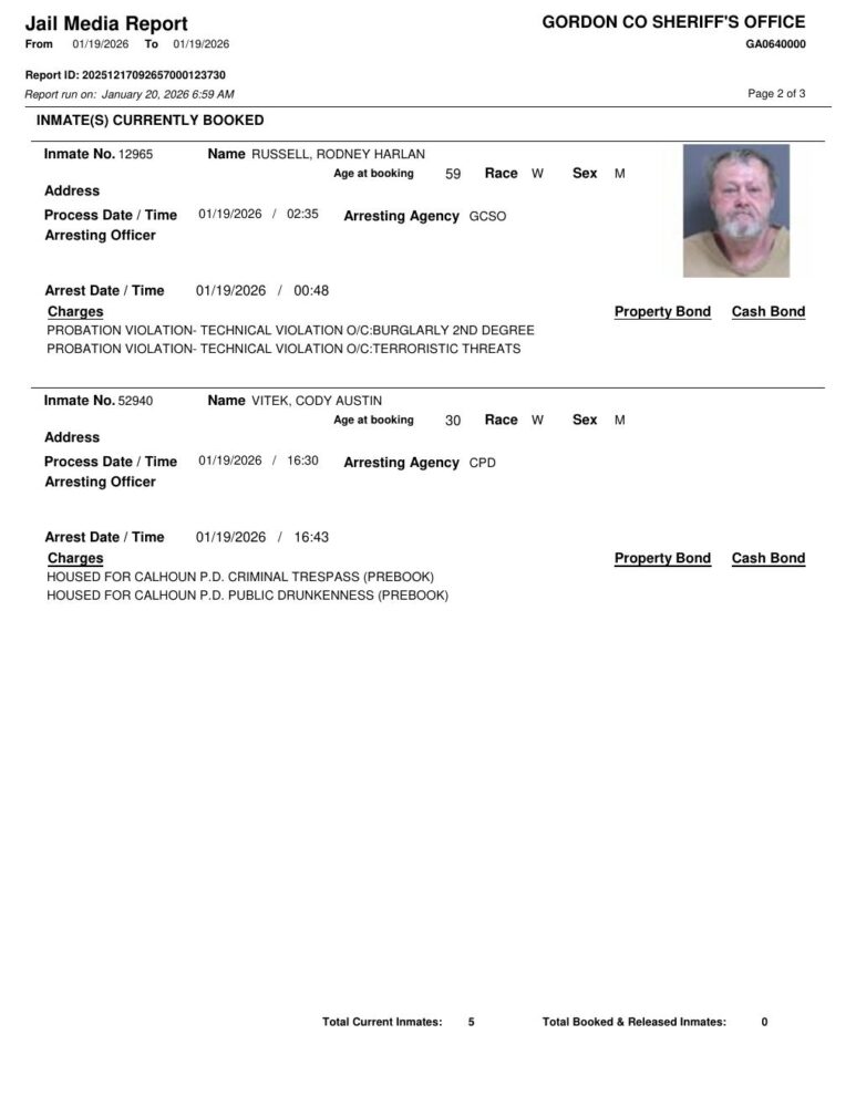 Gordon County Arrest Report 1/20/2026