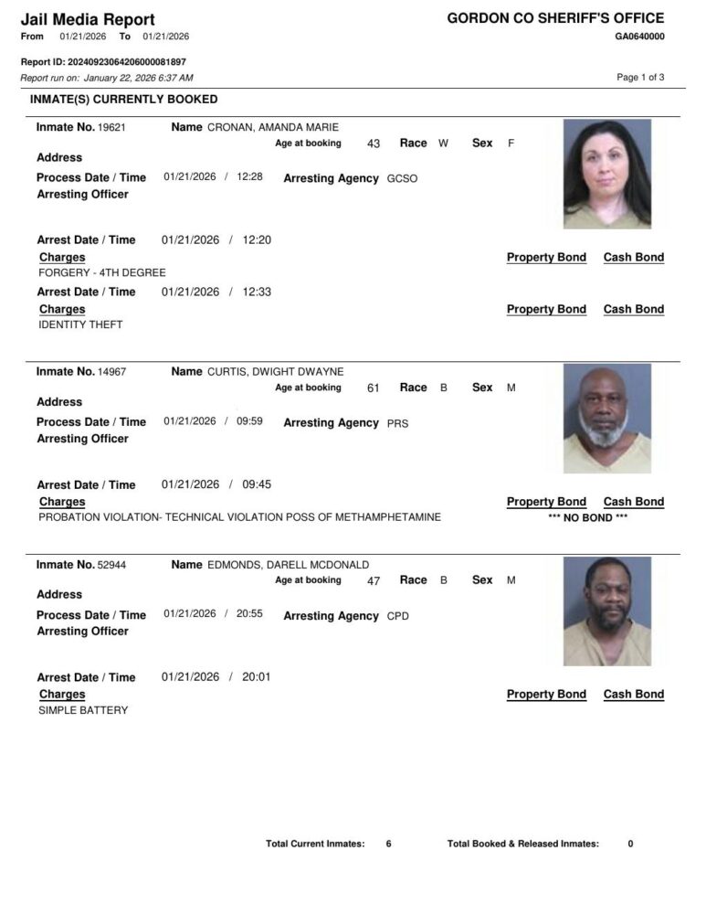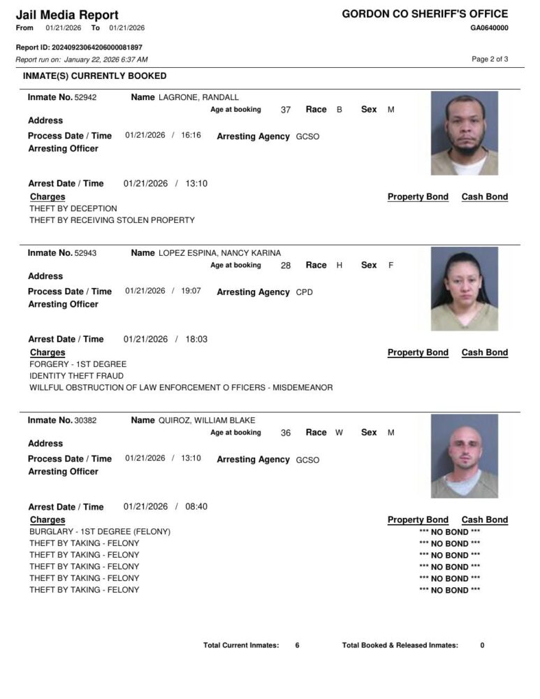 Gordon County Arrest Report 1/22/2026