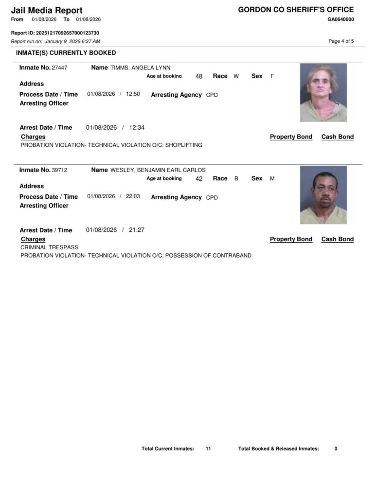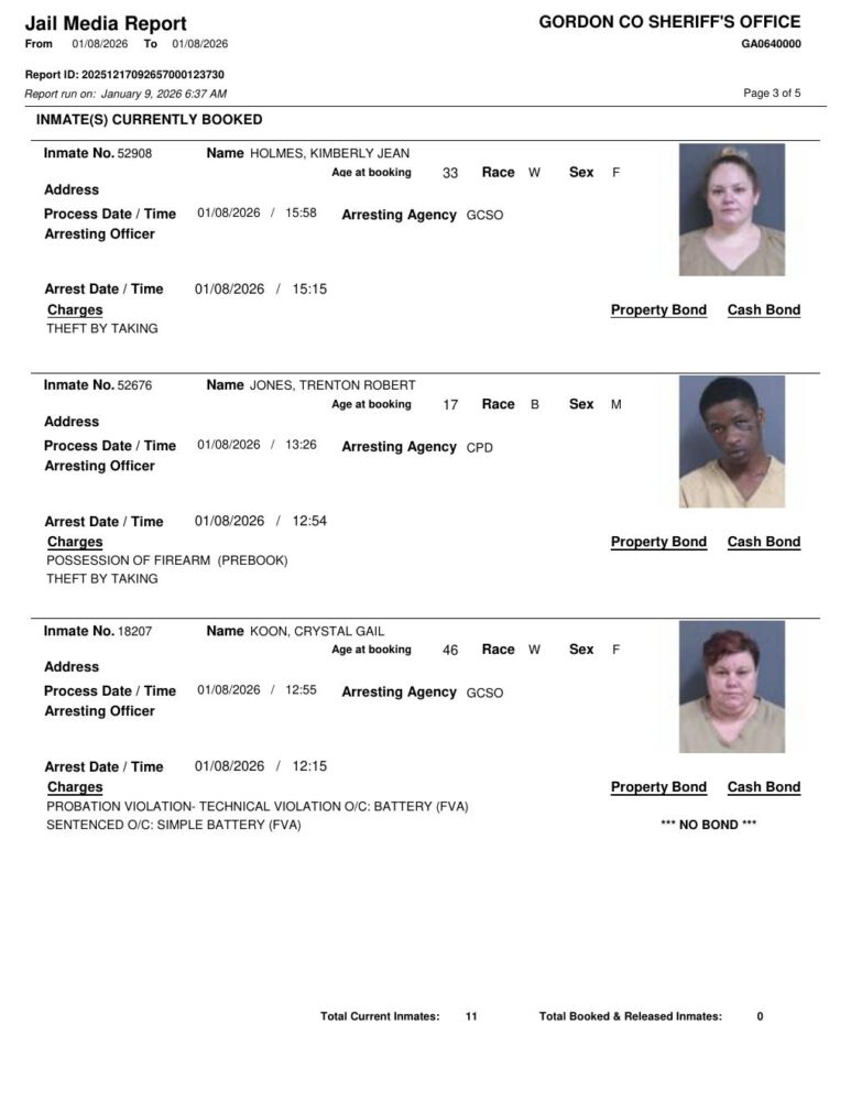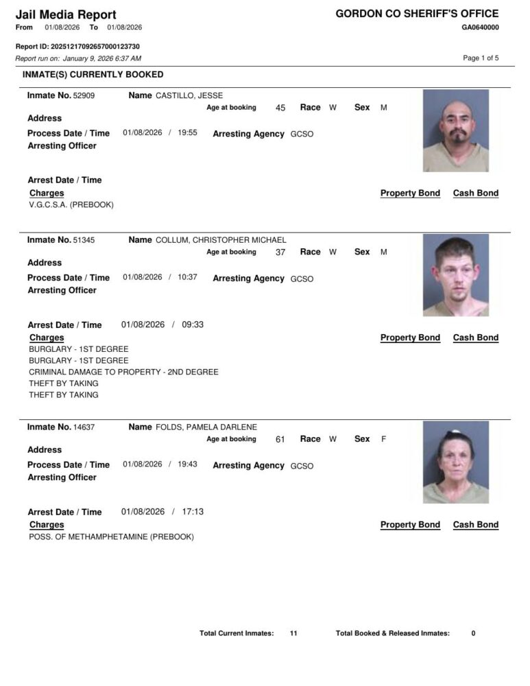 Gordon County Arrest Report 1/9/2026