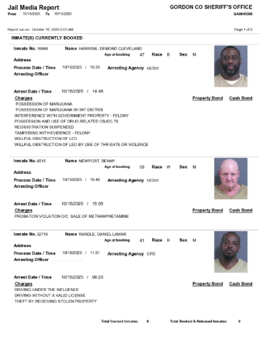 HomeArrest ReportsGordon County Arrest Report 10/16/2025Gordon County Arrest Report 10/16/2025Thu, October 16, 2025SHARE NOW ×❮❯
