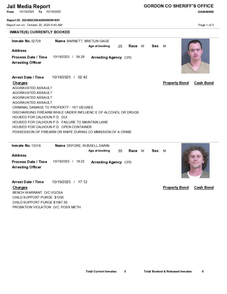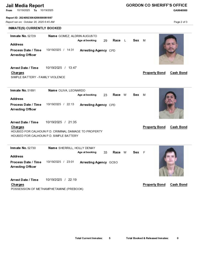 HomeArrest ReportsGordon County Arrest Report 10/20/2025Gordon County Arrest Report 10/20/2025Mon, October 20, 2025SHARE NOW ×❮❯