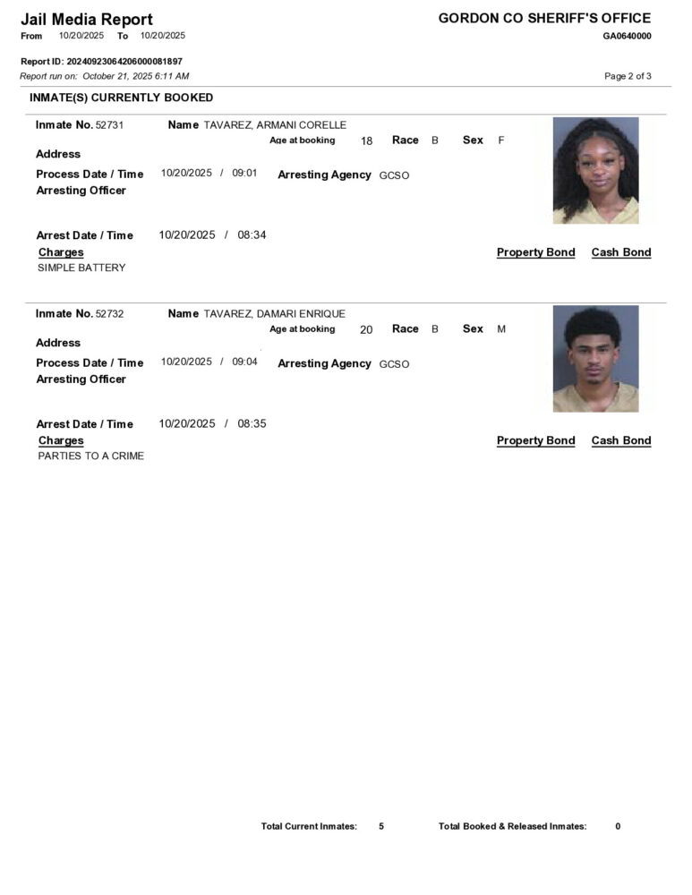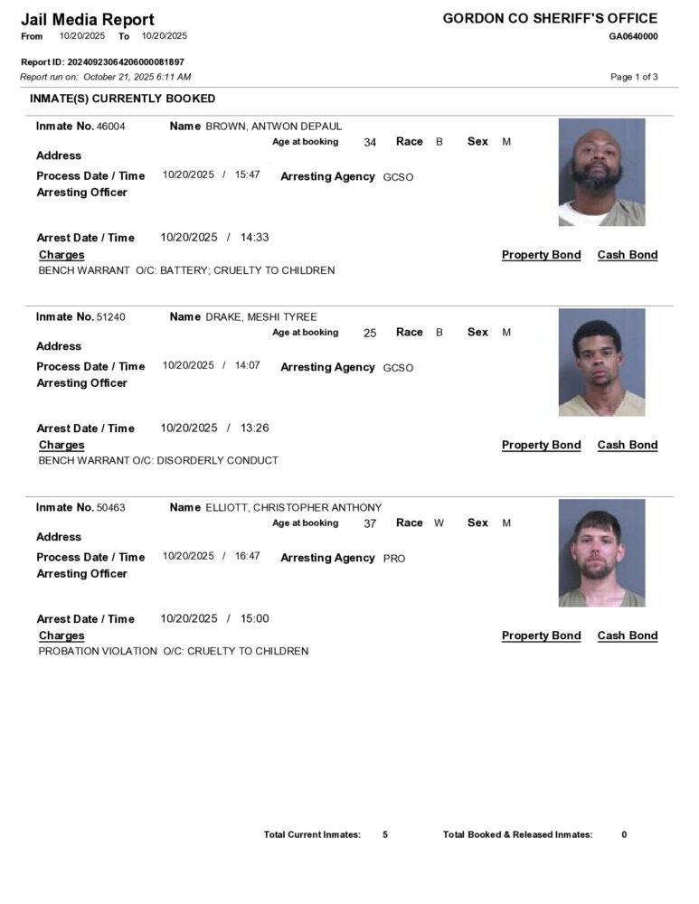 HomeArrest ReportsGordon County Arrest Report 10/21/2025Gordon County Arrest Report 10/21/2025Tue, October 21, 2025SHARE NOW ×❮❯