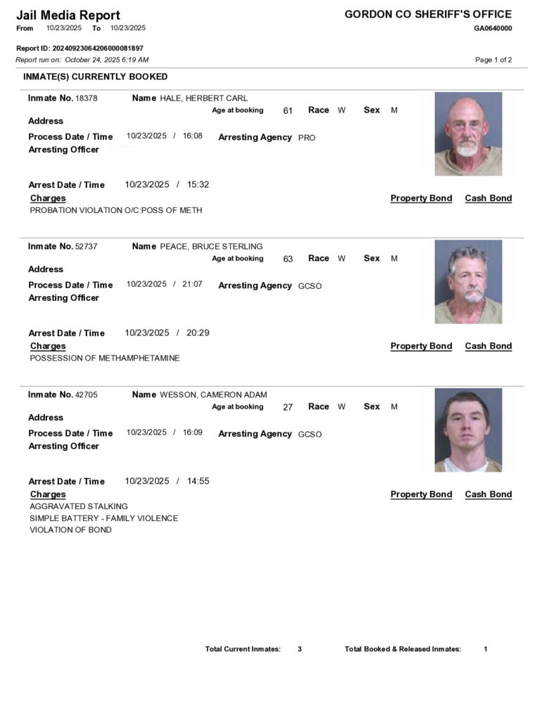 HomeArrest ReportsGordon County Arrest Report 10/24/2025Gordon County Arrest Report 10/24/2025Fri, October 24, 2025SHARE NOW ×❮❯