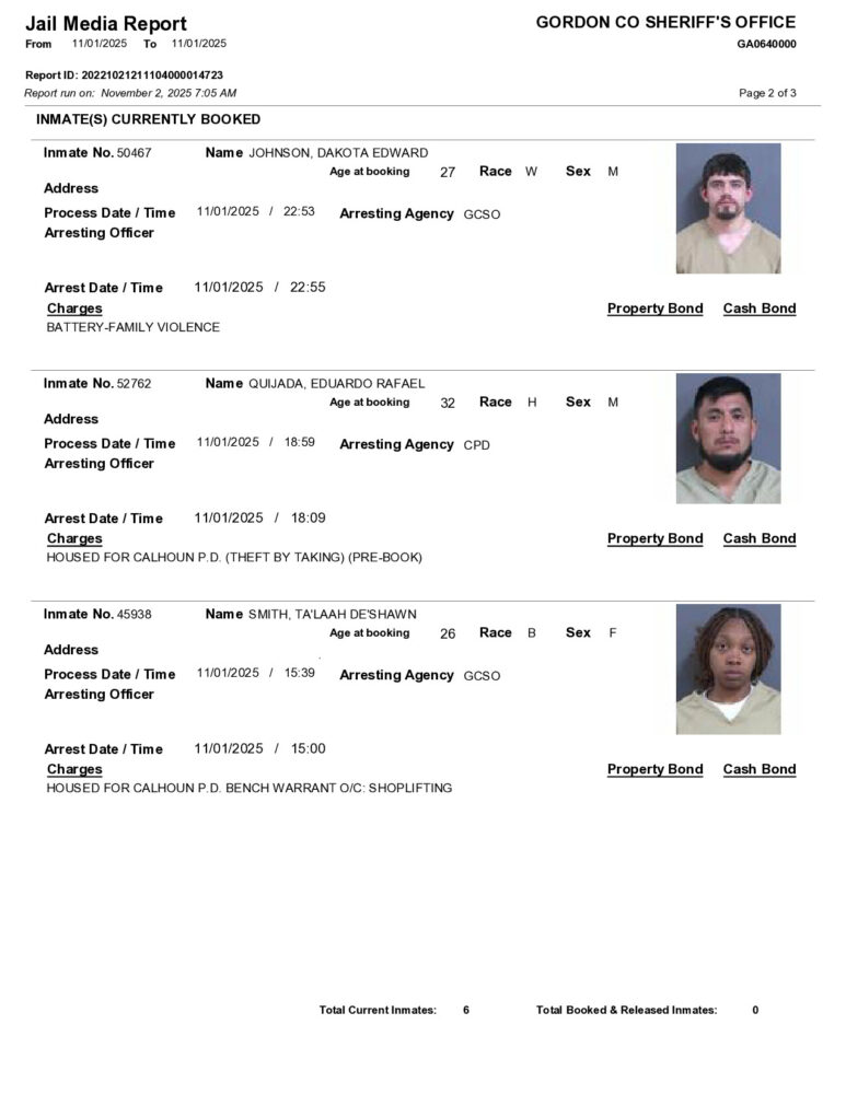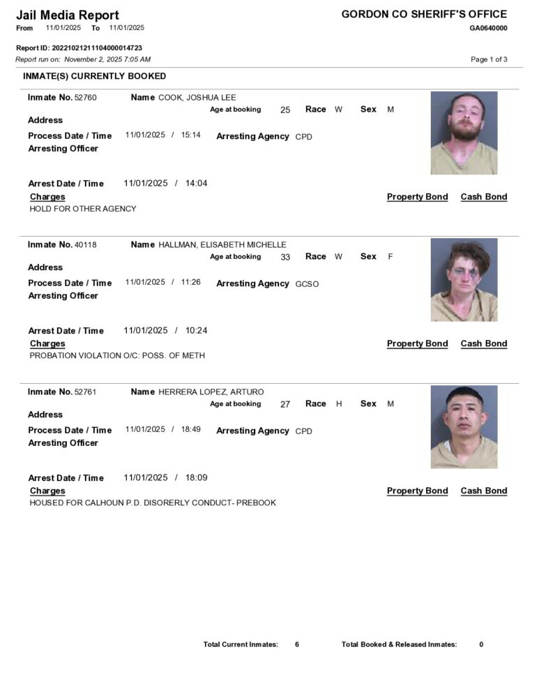Gordon County Arrest Report 11/02/2025