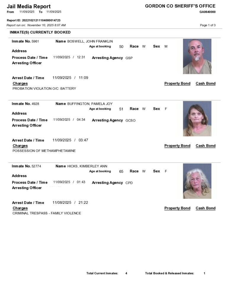 HomeArrest ReportsGordon County Arrest Report 11/10/2025Gordon County Arrest Report 11/10/2025Mon, November 10, 2025SHARE NOW ×❮❯