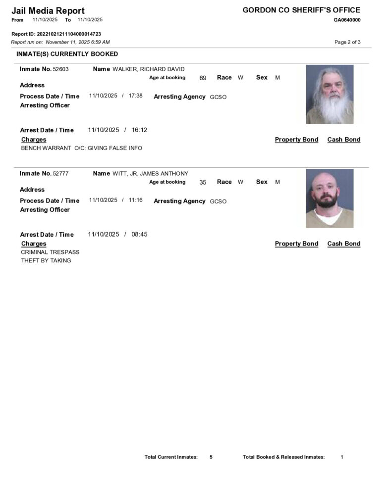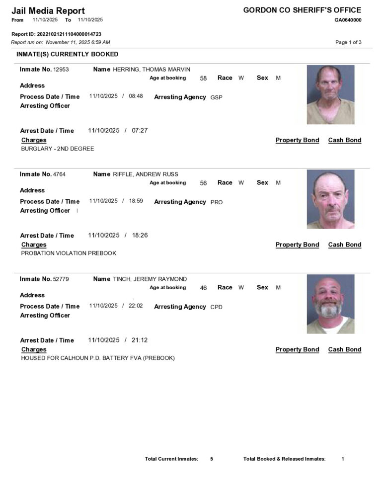 HomeArrest ReportsGordon County Arrest Report 11/11/2025Gordon County Arrest Report 11/11/2025Tue, November 11, 2025SHARE NOW ×❮❯