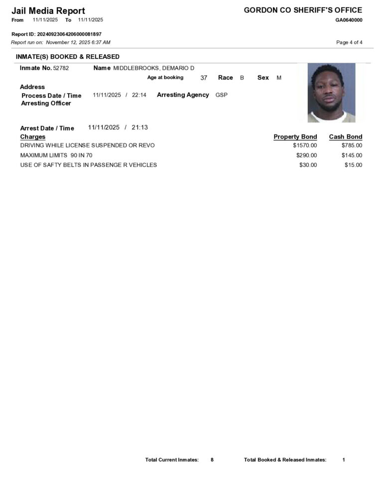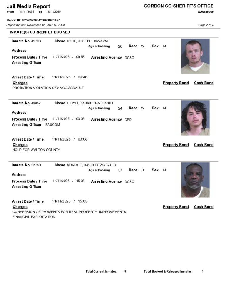 HomeArrest ReportsGordon County Arrest Report 11/12/2025Gordon County Arrest Report 11/12/2025Wed, November 12, 2025SHARE NOW ×❮❯