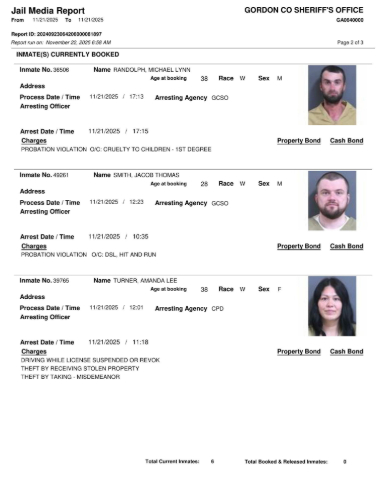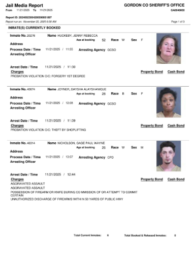 HomeArrest ReportsGordon County Arrest Report 11/22/2025Gordon County Arrest Report 11/22/2025Sat, November 22, 2025SHARE NOW ×❮❯