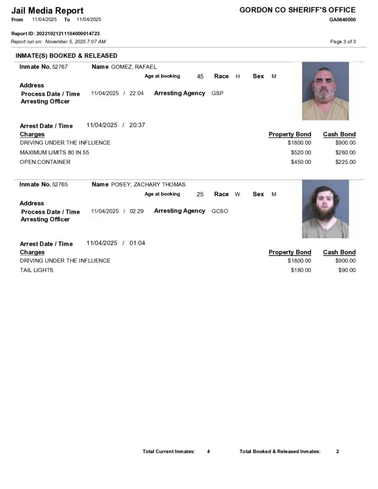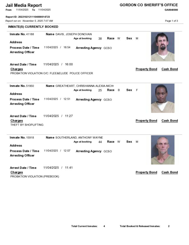 HomeArrest ReportsGordon County Arrest Report 11/5/2025Gordon County Arrest Report 11/5/2025Wed, November 5, 2025SHARE NOW ×❮❯