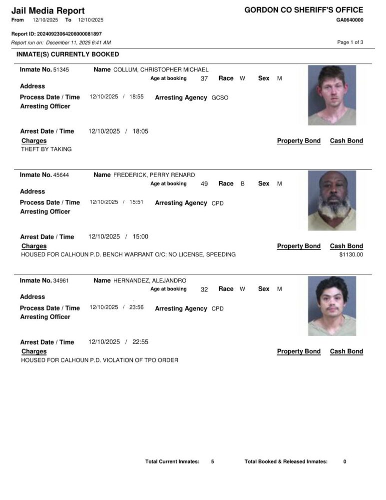 HomeArrest ReportsGordon County Arrest Report 12/11/2025Gordon County Arrest Report 12/11/2025Thu, December 11, 2025SHARE NOW ×❮❯