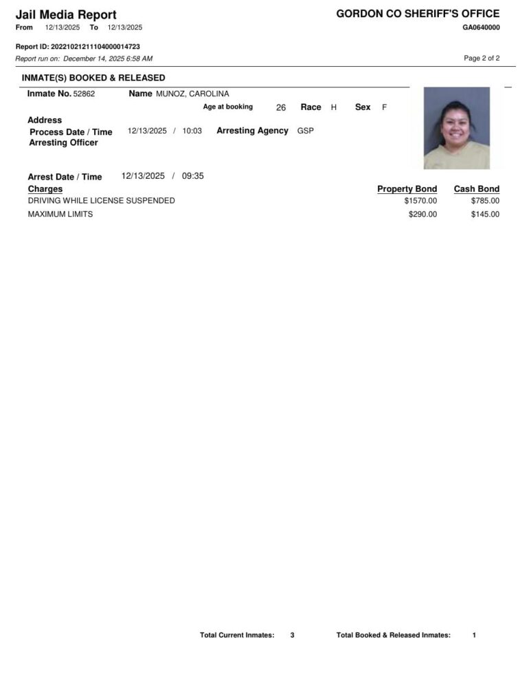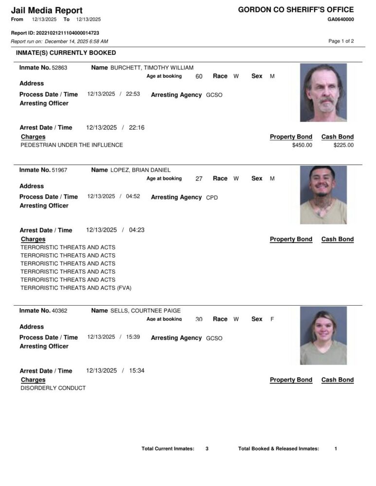 HomeArrest ReportsGordon County Arrest Report 12/14/2025Gordon County Arrest Report 12/14/2025Mon, December 15, 2025SHARE NOW ×❮❯