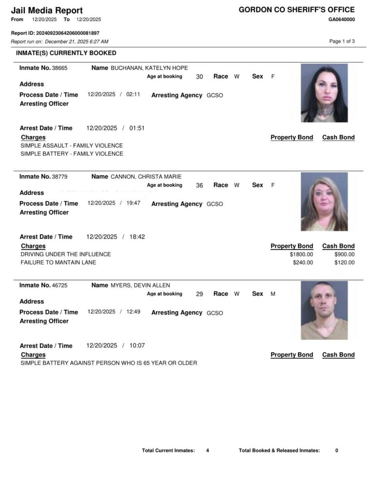 HomeArrest ReportsGordon County Arrest Report 12/21/2025Gordon County Arrest Report 12/21/2025Sun, December 21, 2025SHARE NOW ×❮❯