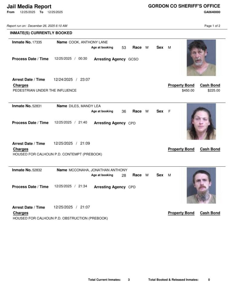HomeArrest ReportsGordon County Arrest Report 12/26/2025Gordon County Arrest Report 12/26/2025Sat, December 27, 2025SHARE NOW ×❮❯