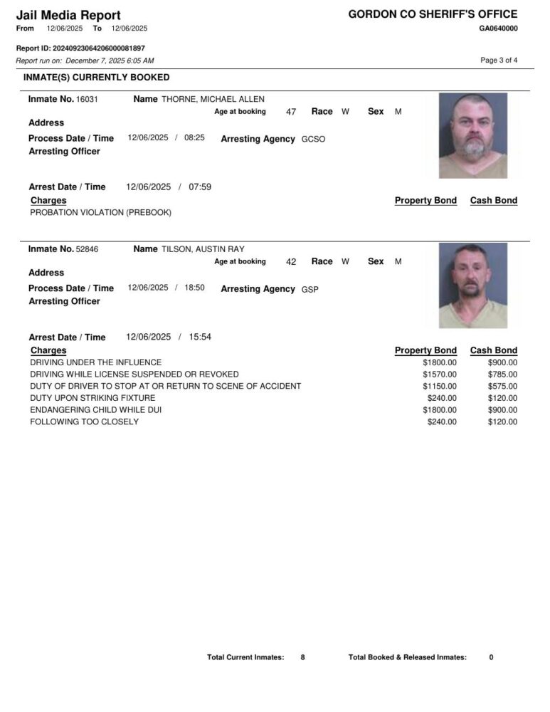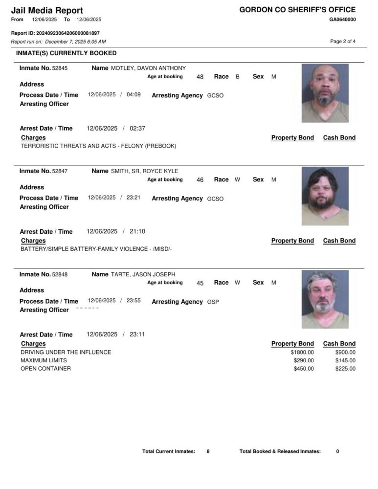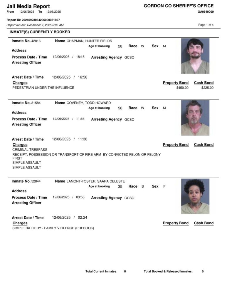 HomeArrest ReportsGordon County Arrest Report 12/7/2025Gordon County Arrest Report 12/7/2025Mon, December 8, 2025SHARE NOW ×❮❯