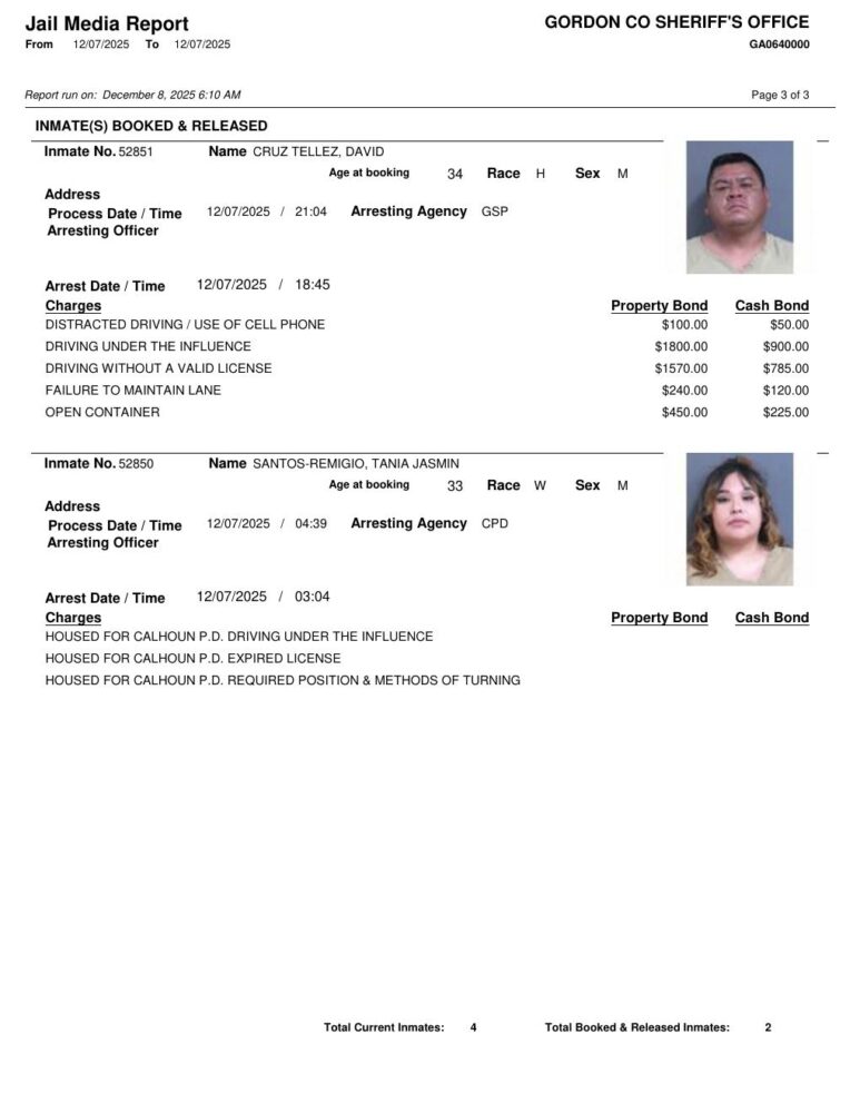Gordon County Arrest Report 12/8/2025