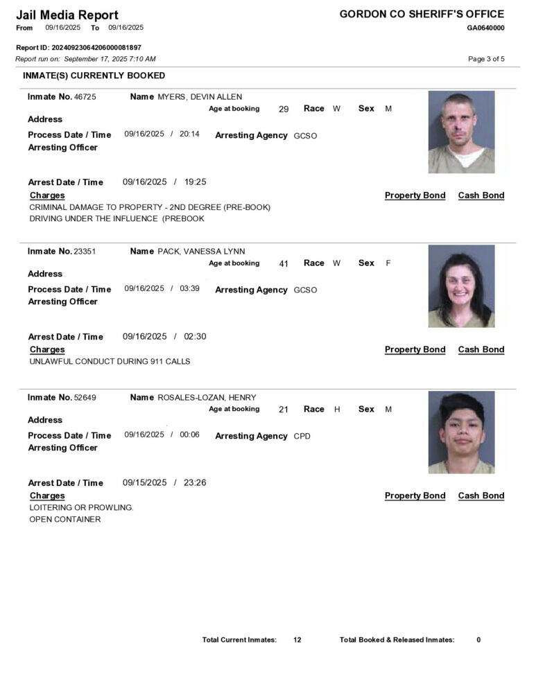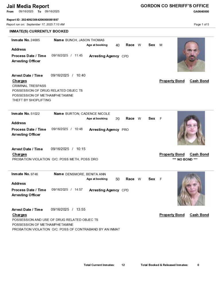 HomeArrest ReportsGordon County Arrest ReportGordon County Arrest ReportWed, September 17, 2025SHARE NOW ×❮❯