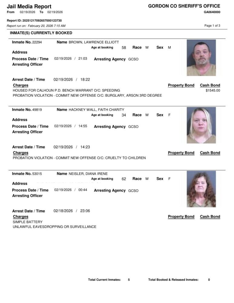 HomeArrest ReportsGordon County Arrest Report 2/20/2026Gordon County Arrest Report 2/20/2026Fri, February 20, 2026 SHARE NOW ×❮❯ Loading advertisement…