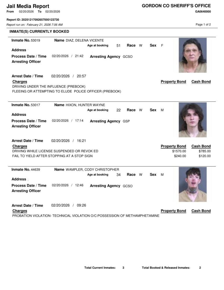 HomeArrest ReportsGordon County Arrest Report 2/21/26Gordon County Arrest Report 2/21/26Sat, February 21, 2026 SHARE NOW ×❮❯ Loading advertisement…