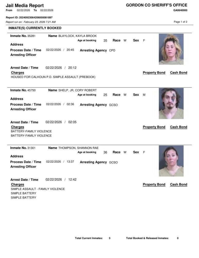 HomeArrest ReportsGordon County Arrest Report 2/23/2026Gordon County Arrest Report 2/23/2026Mon, February 23, 2026 SHARE NOW ×❮❯ Loading advertisement…