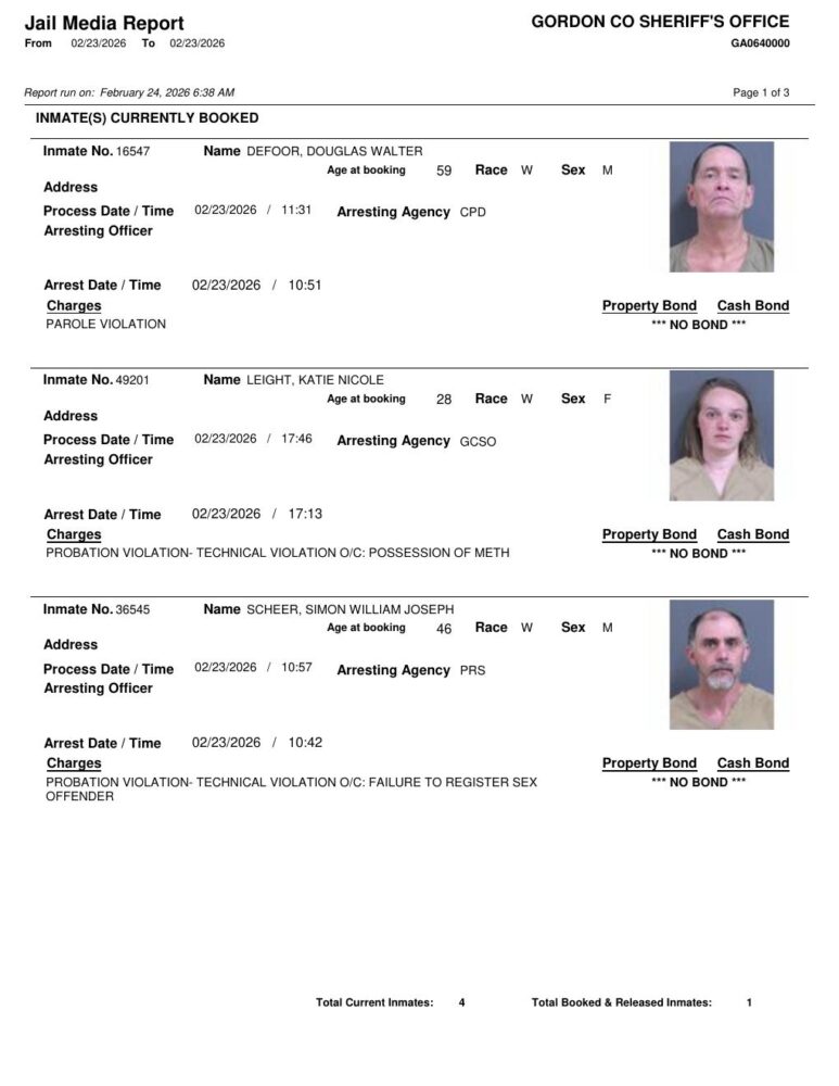 HomeArrest ReportsGordon County Arrest Report 2/24/2026Gordon County Arrest Report 2/24/2026Tue, February 24, 2026 SHARE NOW ×❮❯ Loading advertisement…