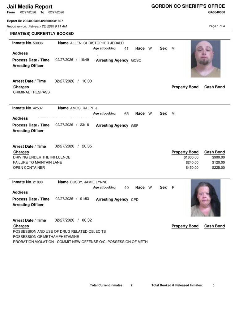 HomeArrest ReportsGordon County Arrest Report 2/28/2026Gordon County Arrest Report 2/28/2026Sat, February 28, 2026 SHARE NOW ×❮❯ Loading advertisement…