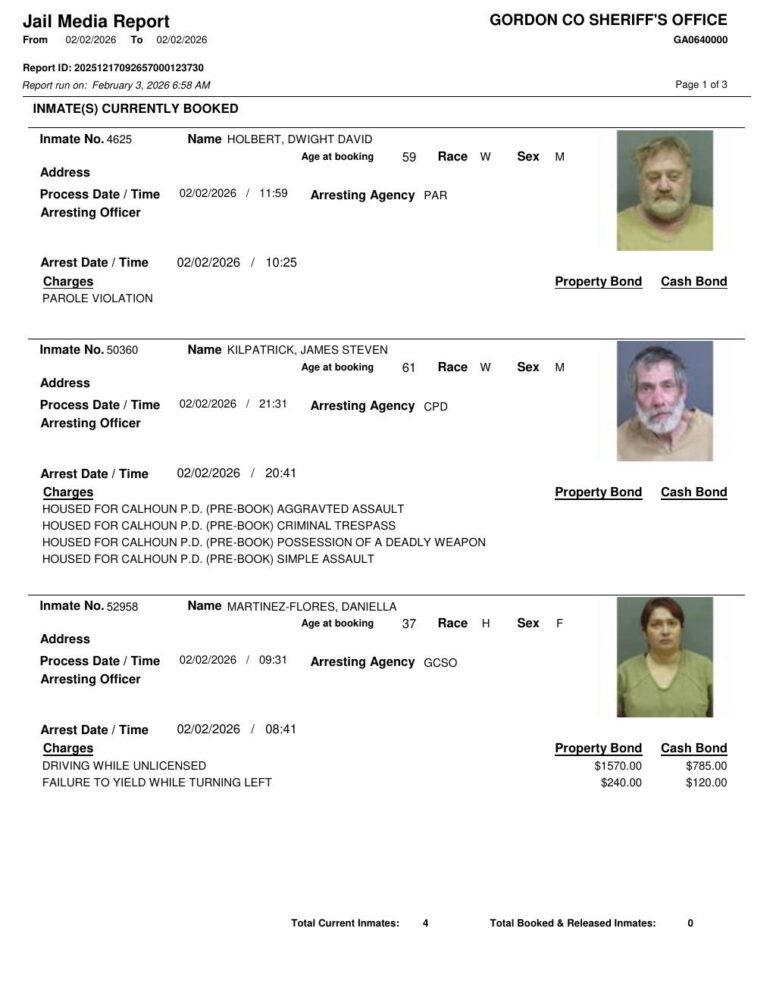 Gordon County Arrest Report 2/3/2026