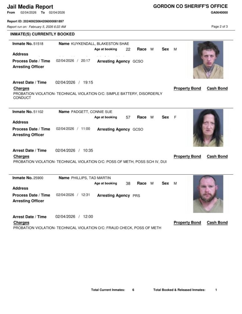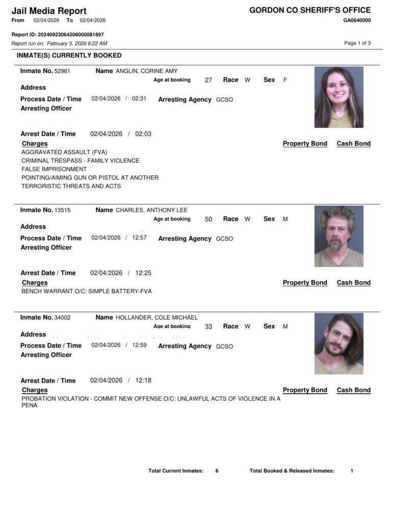 Gordon County Arrest Report 2/5/2026
