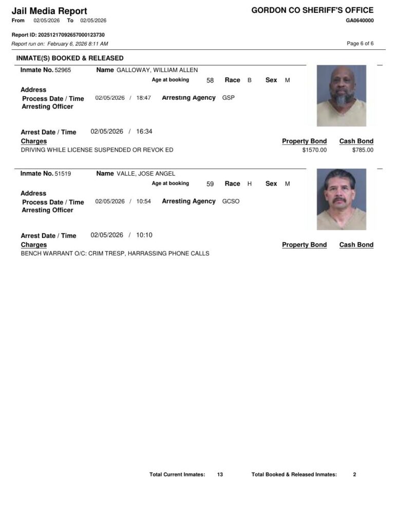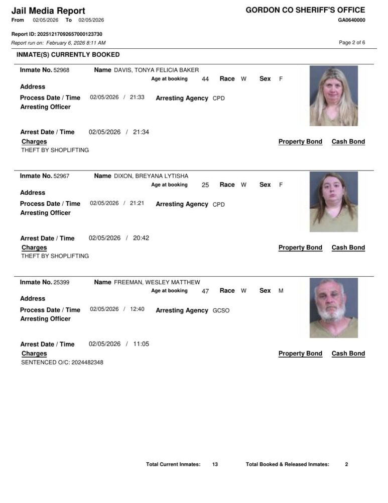 HomeArrest ReportsGordon County Arrest Report 2/6/2026Gordon County Arrest Report 2/6/2026Fri, February 6, 2026 SHARE NOW ×❮❯ Loading advertisement…