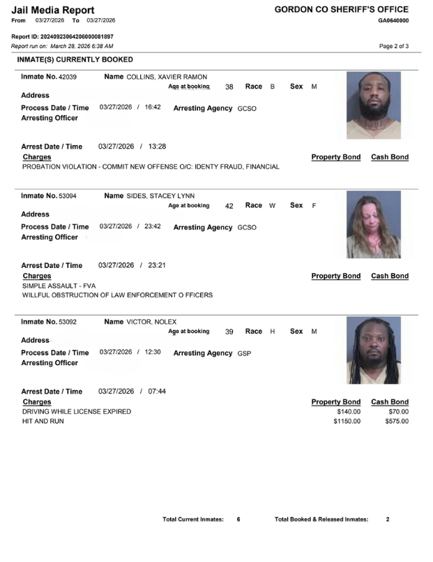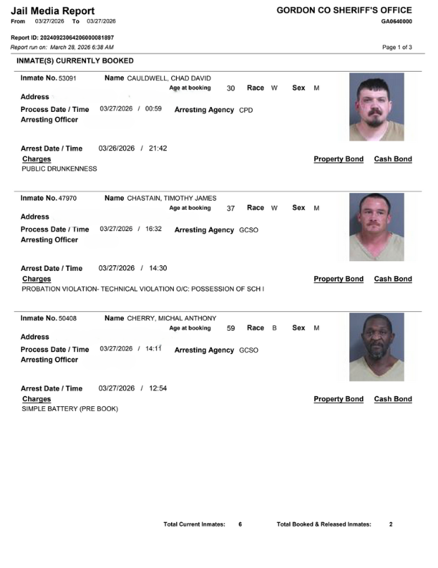 Gordon County Arrest Report 3/28/2026