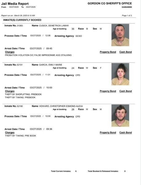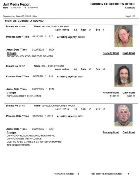HomeArrest ReportsGordon County Arrest Report 3-28-25Gordon County Arrest Report 3-28-25Fri, March 28, 2025SHARE NOW Gordon County Sheriff’s Office released the following arrest:
