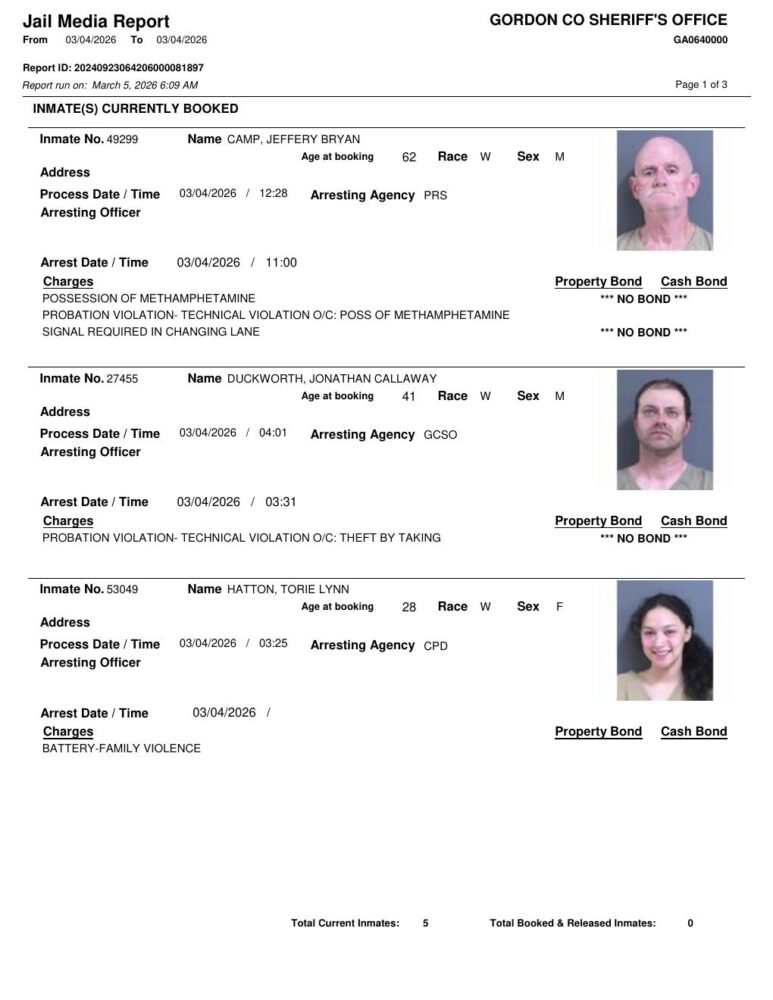 HomeArrest ReportsGordon County Arrest Report 3/5/2026Gordon County Arrest Report 3/5/2026Thu, March 5, 2026 SHARE NOW ×❮❯ Loading advertisement…