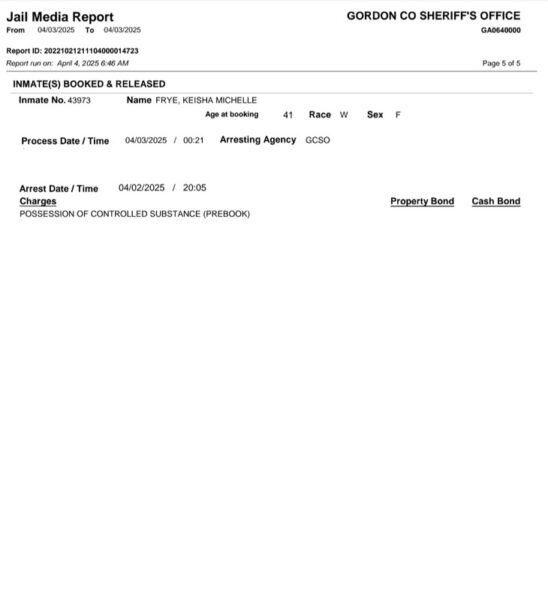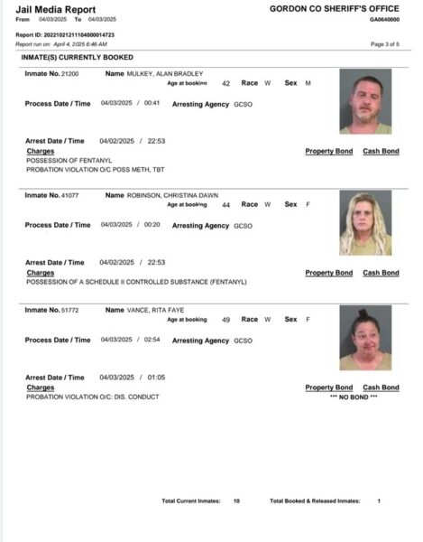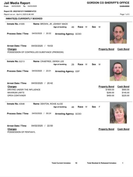 HomeArrest ReportsGordon County Arrest Report 4-04-25Gordon County Arrest Report 4-04-25Fri, April 4, 2025SHARE NOW Gordon County Sheriff’s Office released the following arrest: