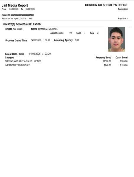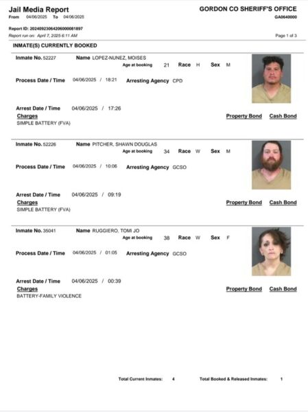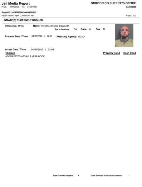 HomeArrest ReportsGordon County Arrest Report 4-07-25Gordon County Arrest Report 4-07-25Mon, April 7, 2025SHARE NOW Gordon County Sheriff’s Office released the following arrest: