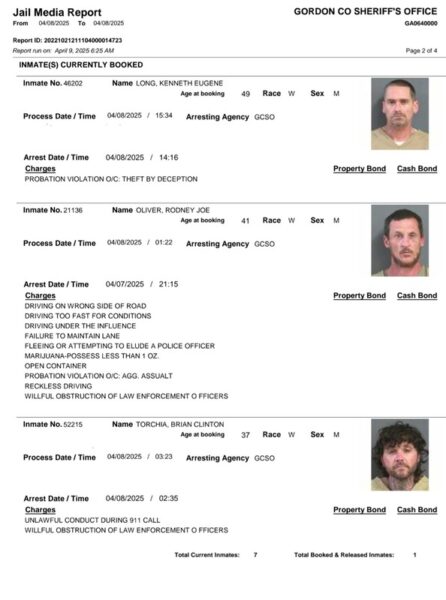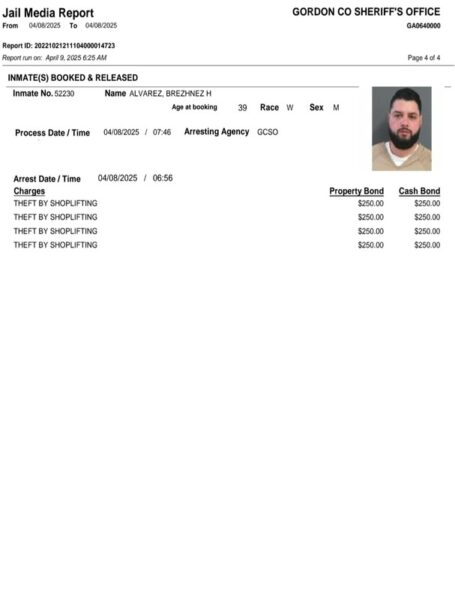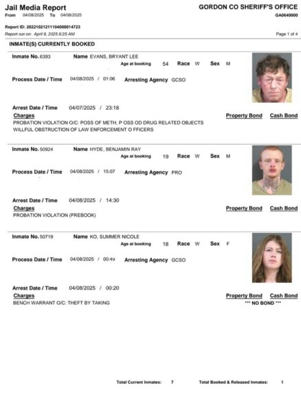 Gordon County Arrest Report 4-09-25