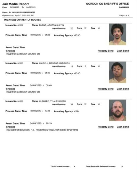 Gordon County Arrest Report 4-10-25