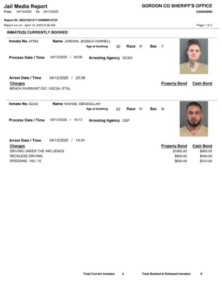 HomeArrest ReportsGordon County Arrest Report 4-14-25Gordon County Arrest Report 4-14-25Tue, April 15, 2025SHARE NOW Gordon County Sheriff’s Office released the following arrests: