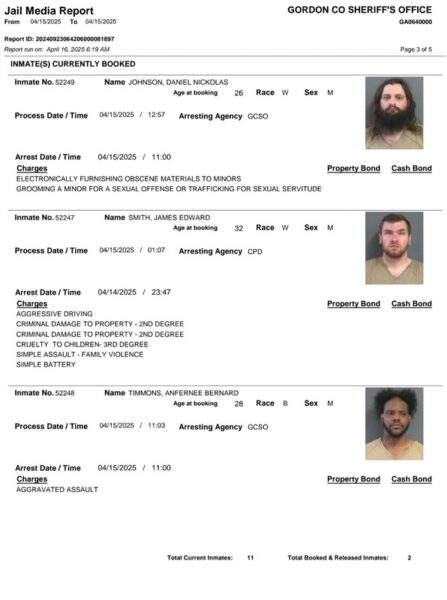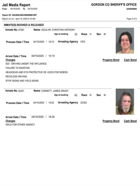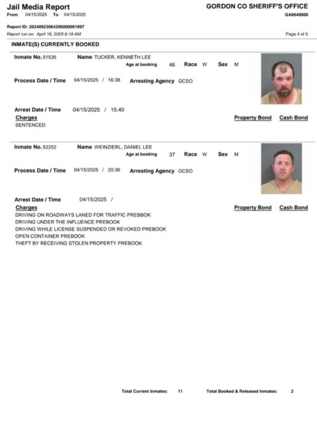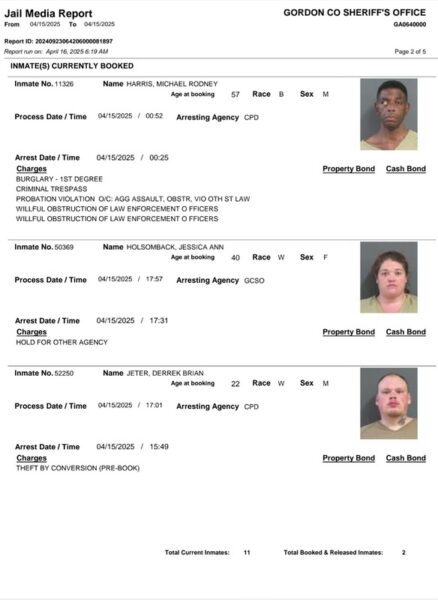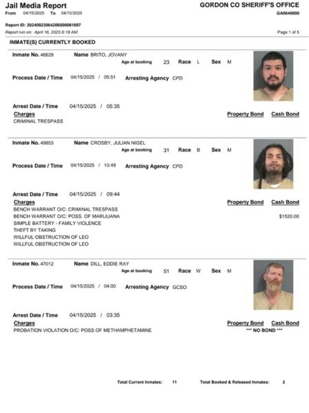 HomeArrest ReportsGordon County Arrest Report 4-16-25Gordon County Arrest Report 4-16-25Wed, April 16, 2025SHARE NOW Gordon County Sheriff’s Office released the following arrests: