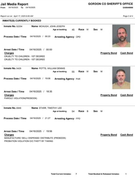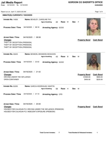 Gordon County Arrest Report 4-17-25