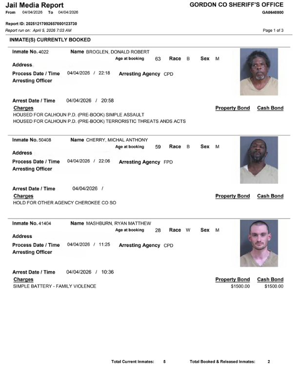 HomeArrest ReportsGordon County Arrest Report 4/5/2026Gordon County Arrest Report 4/5/2026Sun, April 5, 2026 SHARE NOW ×❮❯ Loading advertisement…