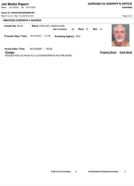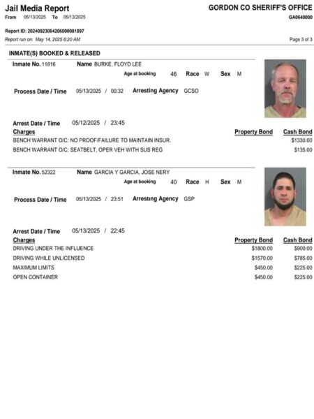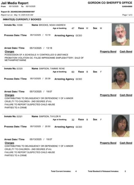 HomeArrest ReportsGordon County Arrest Report 5-14-25Gordon County Arrest Report 5-14-25Wed, May 14, 2025SHARE NOW Gordon County Sheriff’s Office released the following arrests:
