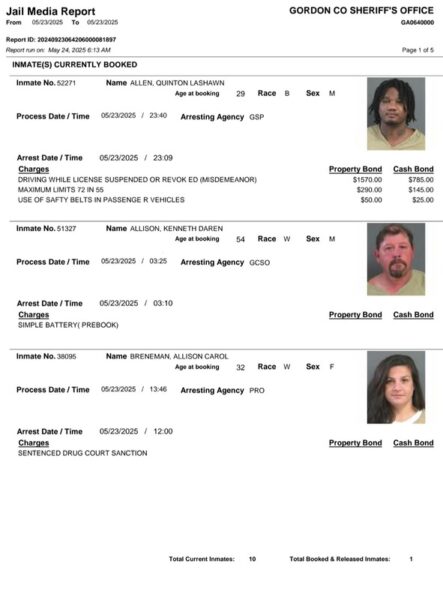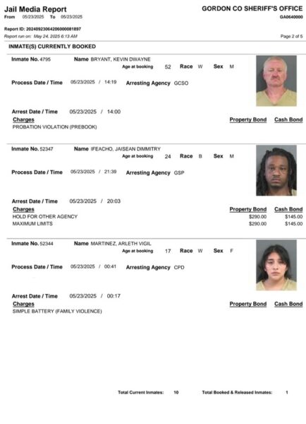 Gordon County Arrest Report 5-24-25
