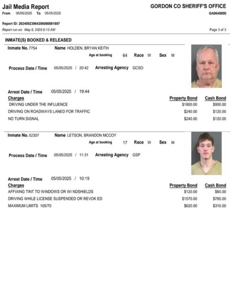 HomeArrest ReportsGordon County Arrest Report 5-6-25Gordon County Arrest Report 5-6-25Tue, May 6, 2025SHARE NOW Gordon County Sheriff’s Office released the following arrests: