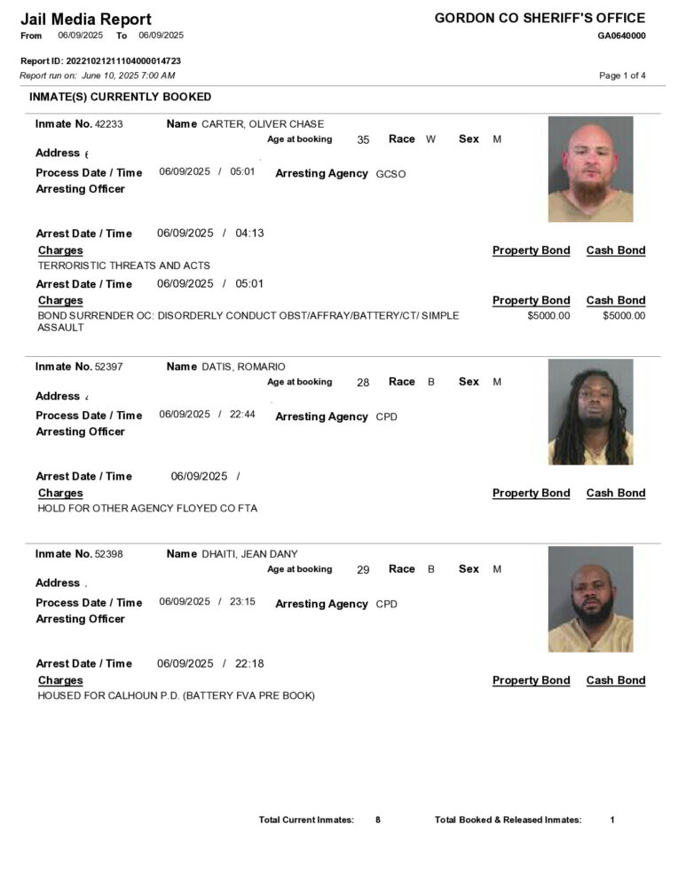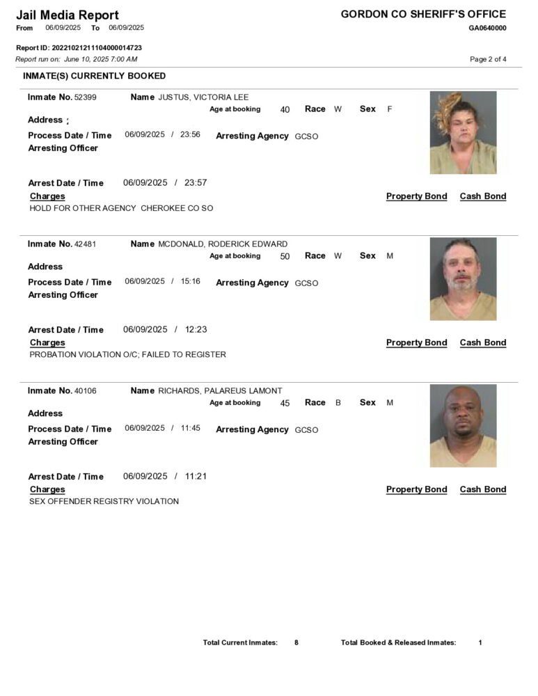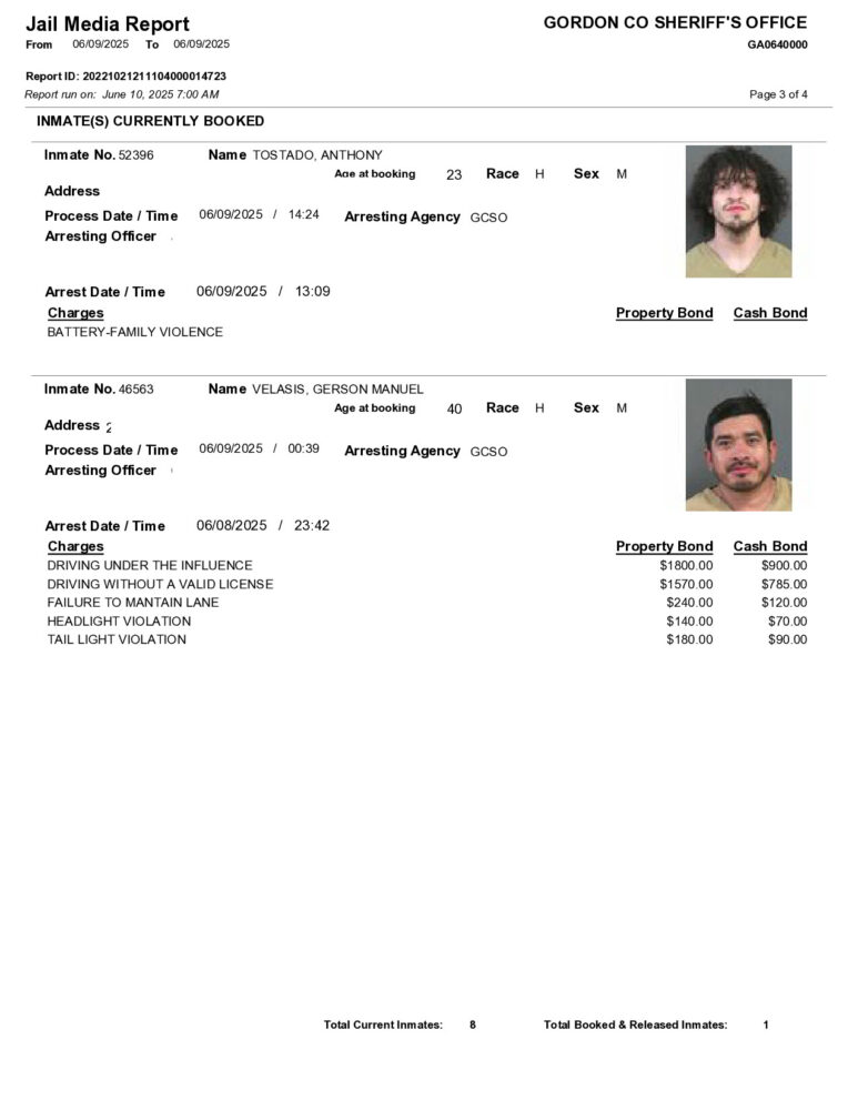 HomeArrest ReportsGordon County Arrest Report 6/10/25Gordon County Arrest Report 6/10/25Tue, June 10, 2025SHARE NOW ×❮❯