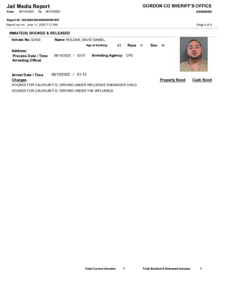 HomeArrest ReportsGordon County Arrest Report 6/11/25Gordon County Arrest Report 6/11/25Wed, June 11, 2025SHARE NOW ×❮❯