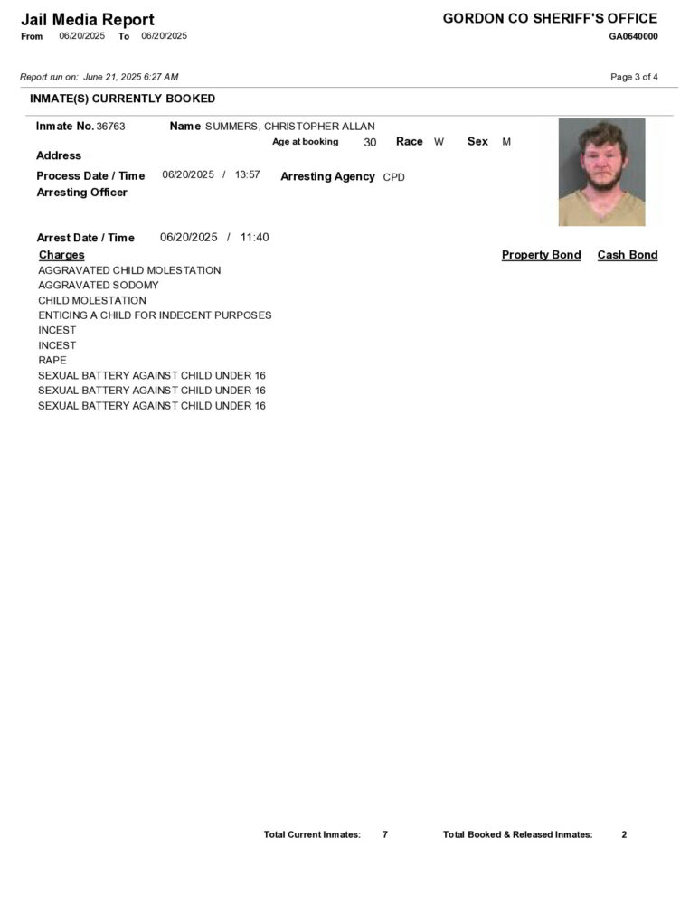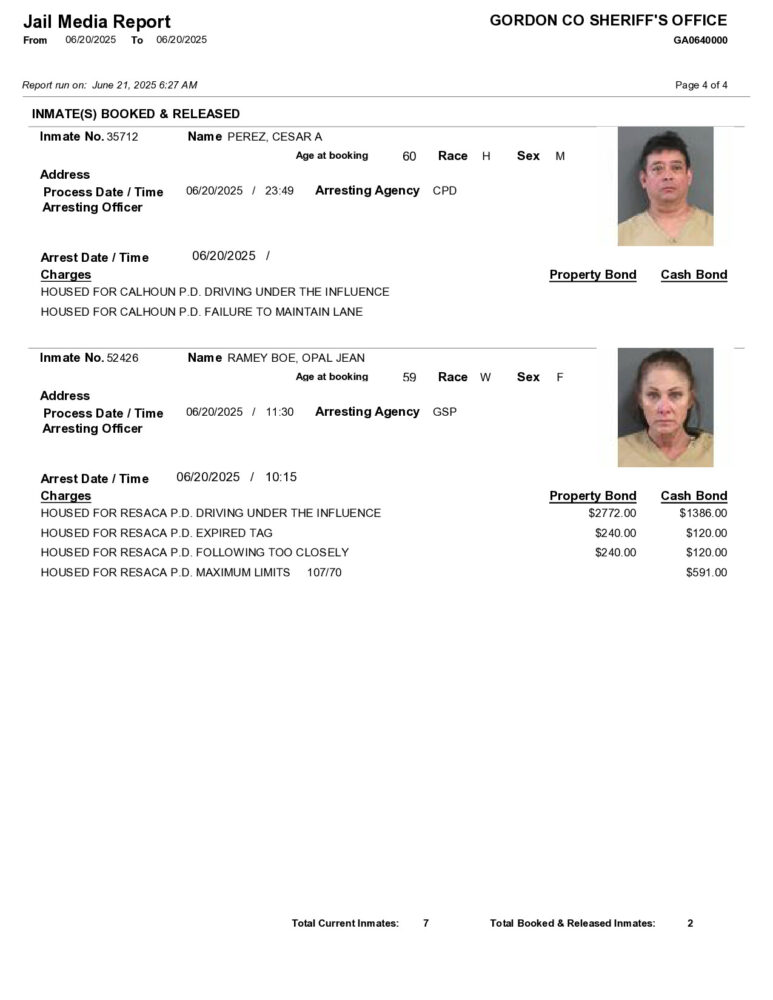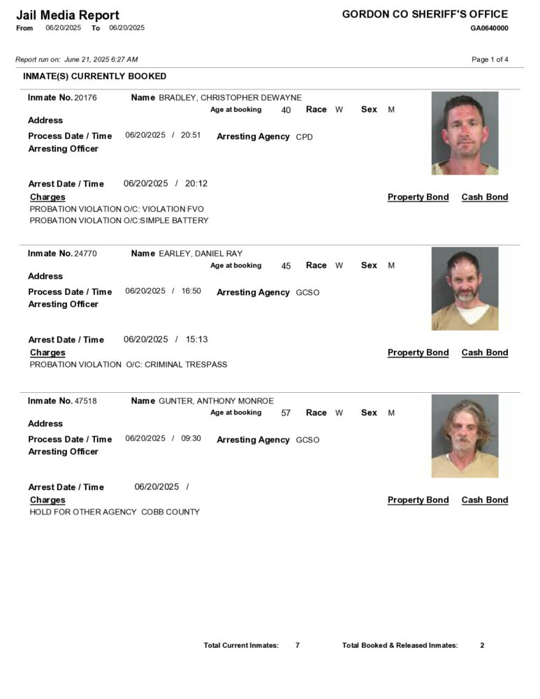 HomeArrest ReportsGordon County Arrest Report 6/21/25Gordon County Arrest Report 6/21/25Sat, June 21, 2025SHARE NOW ×❮❯