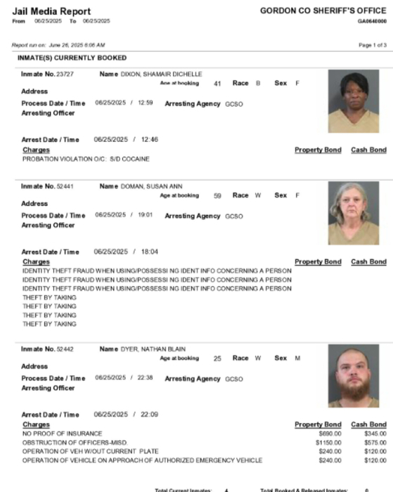 HomeArrest ReportsGordon County Arrest Report 6/26/25Gordon County Arrest Report 6/26/25Thu, June 26, 2025SHARE NOW ×❮❯